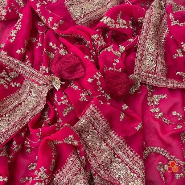 Embrace the regal charm of this exquisite Chinnon dupatta, meticulously adorned with intricate zari work. Crafted from luxurious Chinnon fabric, known for its soft texture and elegant drape, this dupatta is a perfect blend of tradition and sophistication. The shimmering zari embroidery adds a touch of opulence, featuring delicate floral and geometric patterns that glisten beautifully against the rich fabric.